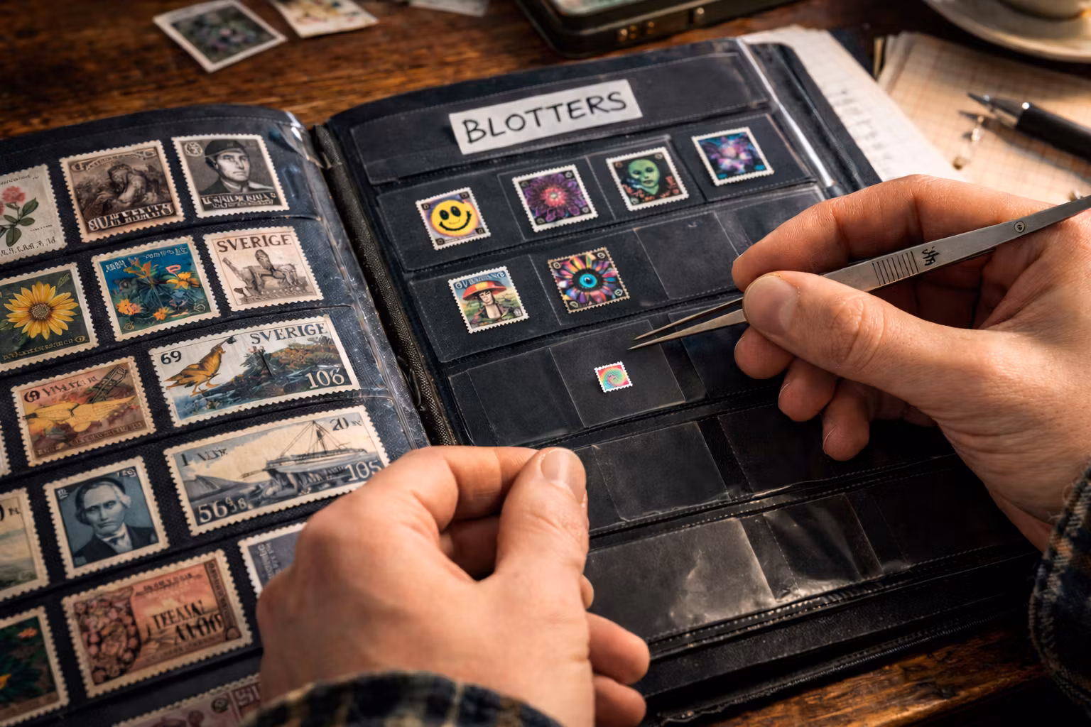 Våra magiska blotters är så kallad blotter art – tryckt miniatyrkonst på små perforerade pappersark, ofta rutade i mycket små rutor (exempelvis 5 × 5 mm). Historiskt har liknande papper förekommit i andra numera olagliga sammanhang, men i dag syftar begreppet inom samlarkretsar framför allt på själva konsten, trycket och det kulturella uttrycket – oberoende av funktion.